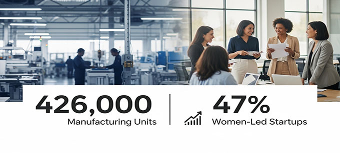 - विनिर्माण इकाइयों की संख्या 4 लाख 26 हजार पहुंची, महिला नेतृत्व के स्टार्टअप 47 प्रतिशत तक बढ़े