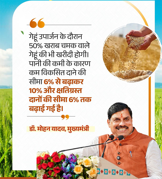 - सीएम डॉ. मोहन यादव के प्रयासों का दिखा असर, 100 लाख मीट्रिक टन हुआ गेहूं खरीदी कोटा